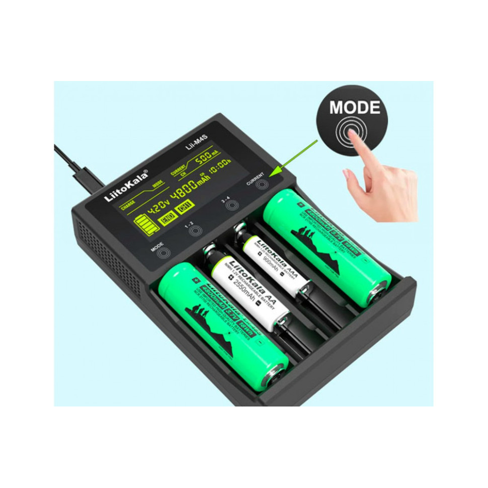 Зарядний пристрій LiitoKala Lii-M4S LiitoKala Lii-M4S - універсальний інтелектуальний зарядний пристрій на 4 незалежні канали з контрастним LED дисплеєм і з функцією Power Bank. За функціоналом і виконанням зарядний пристрій Liitokala Lii-M4S схожий на модель Lii-500S, але модель Lii-MS4 має живлення від USB-C і за рахунок цього більш доступну ціну в порівнянні з Lii-500S. Зарядний пристрій Liitokala Lii-M4S може працювати з різними типами та форматами циліндричних акумуляторів. Liitokala Lii-M4S - багатофункціональний зарядний пристрій, він може заряджати, розряджати, тестувати акумулятори, а також готувати акумулятори до зберігання (функція STORAGE). У Lii-M4S є функція Павер банк, за допомогою якої Ви зможете заряджати мобільні телефони, смартфони, планшети, електронні книги та ін.