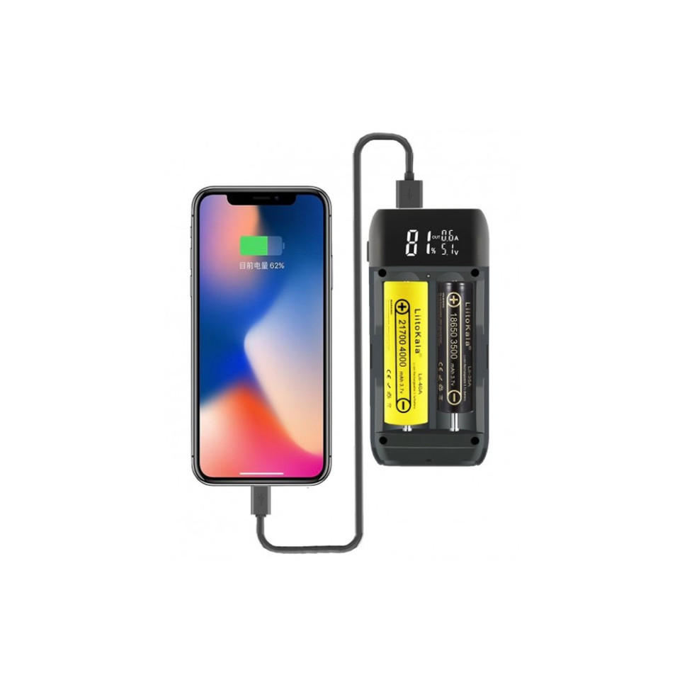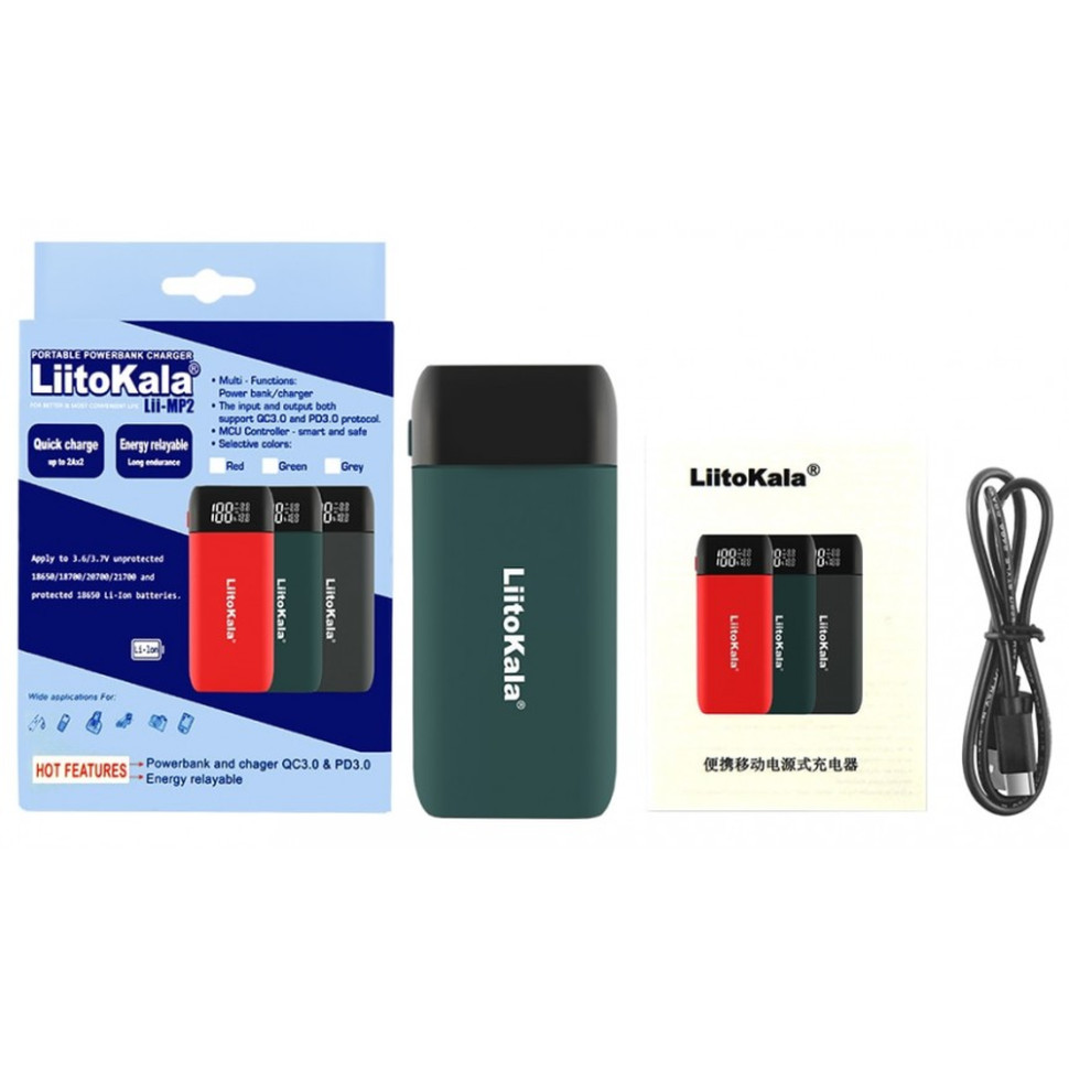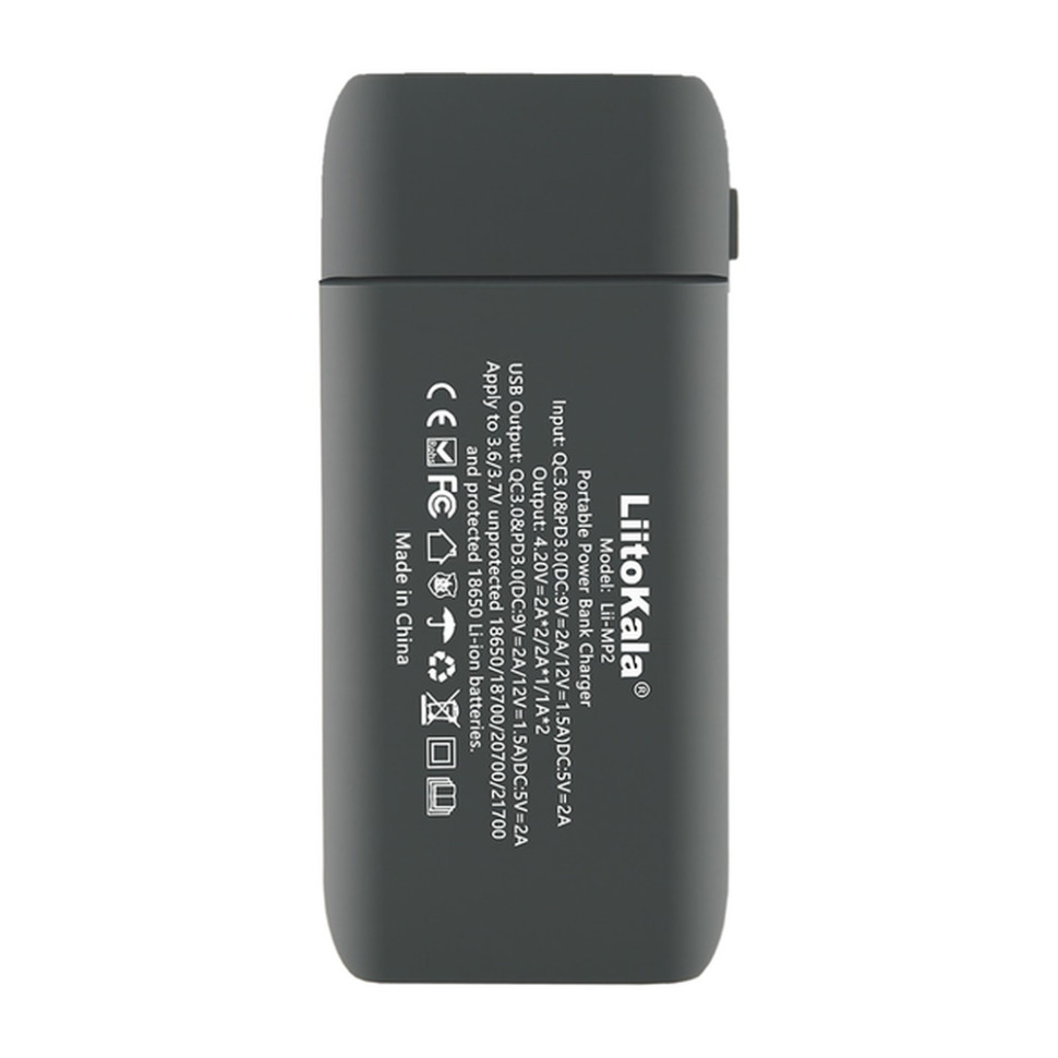 LiitoKala Lii-MP2 — це зарядний пристрій з розширеним функціоналом 2 в 1. Його можна використовувати не тільки для заряджання акумуляторів, а і як Power Bank для заповнення заряду в сторонніх гаджетах. LiitoKala Lii-MP2 не має вбудованого акумулятора, тому без встановлених акумуляторів він не працює як power bank. Lii-MP2 працює лише як проміжна станція: або заряджає акумулятори, або через них живить гаджети. Одночасно заряджати акумулятори та гаджети не можна.